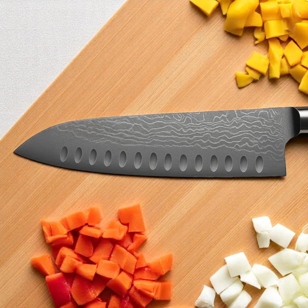 - Knife Type: Santoku Knife (Japanese Chef's Knife), highly effective for slicing, dicing, and mincing.