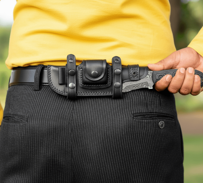 - Horizontal Carry Sheath: Premium leather sheath for easy right-hand access and belt carry.